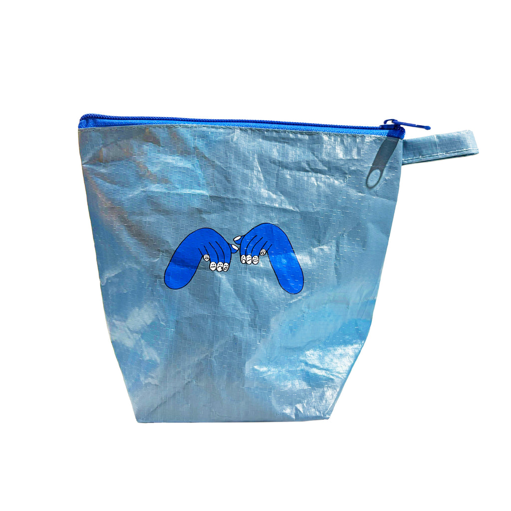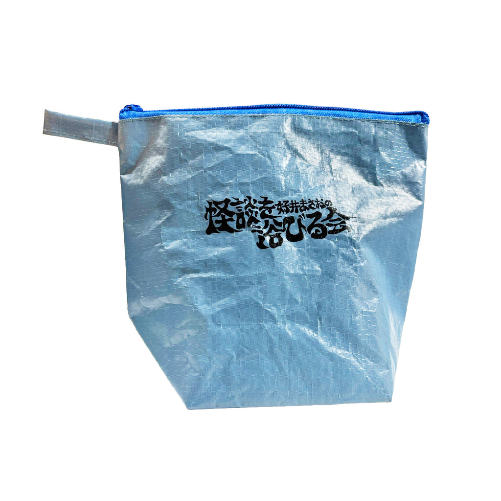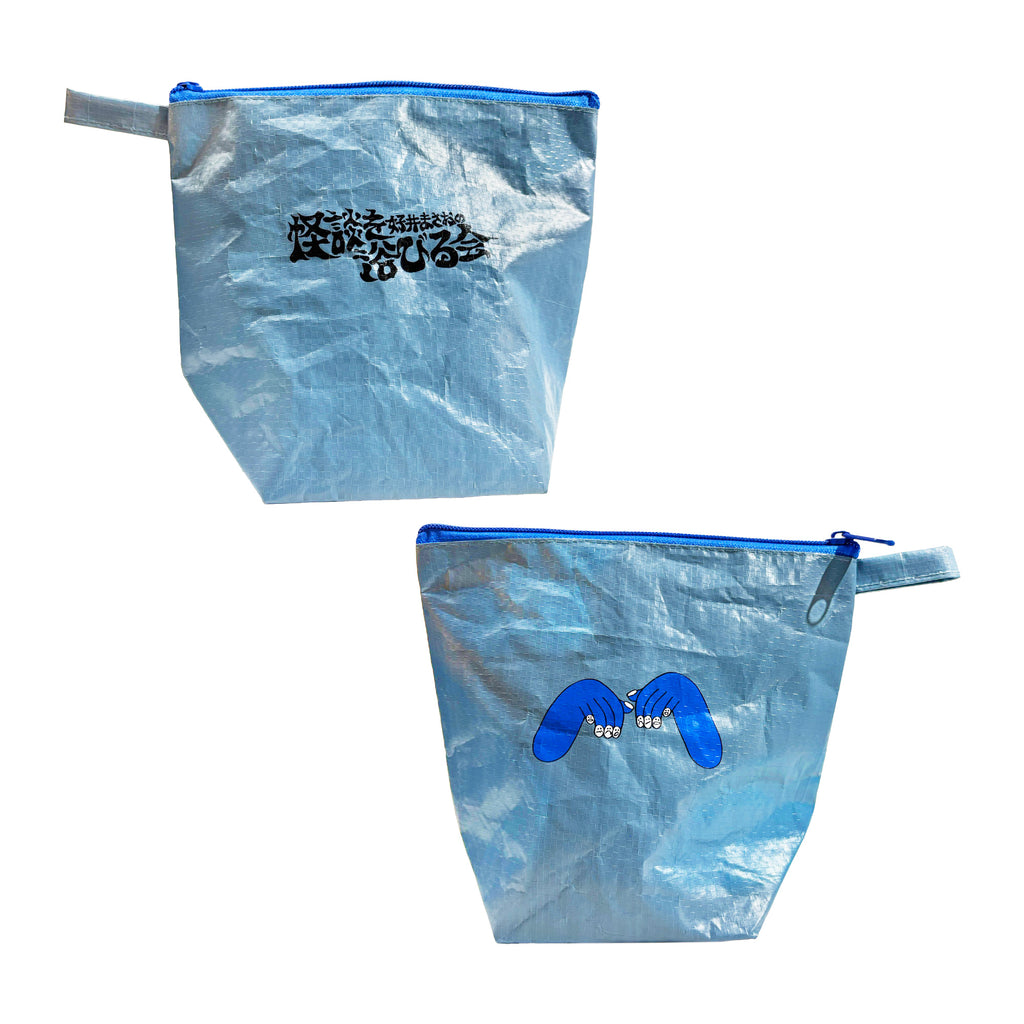 フロントにロゴ、バックにイラストをデザインしたポーチになります。