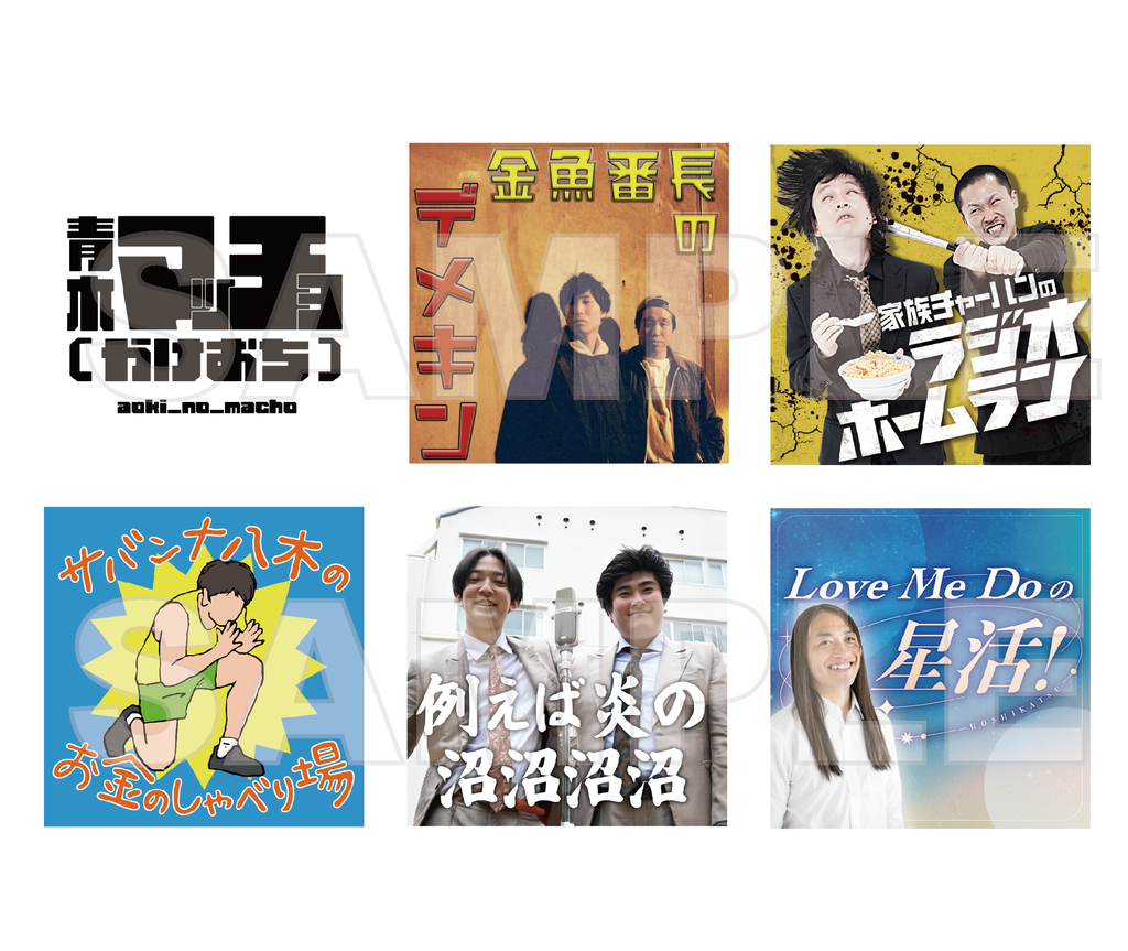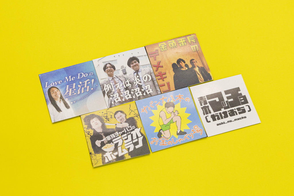 下記6番組の番組カードセットです。 ・青木マッチョ(かけおち) ・例えば炎の沼沼沼沼 ・金魚番長のデメキン ・家族チャーハンのラジオホームラン ・サバンナ八木の「お金のしゃべり場」 ・Love Me Do の星活!チャンネル