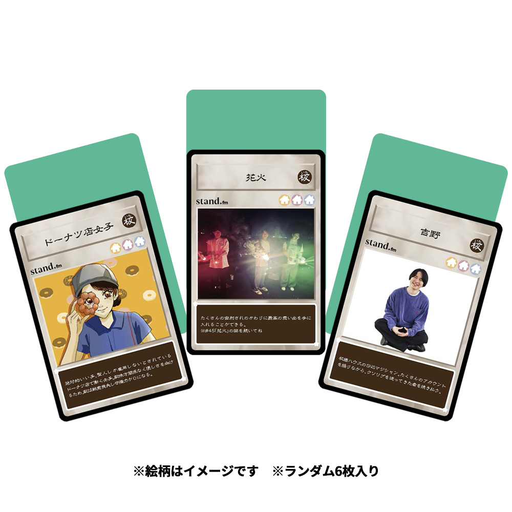 番組や板橋ハウスに関連するカードがランダムで6枚入っています(全30種)。