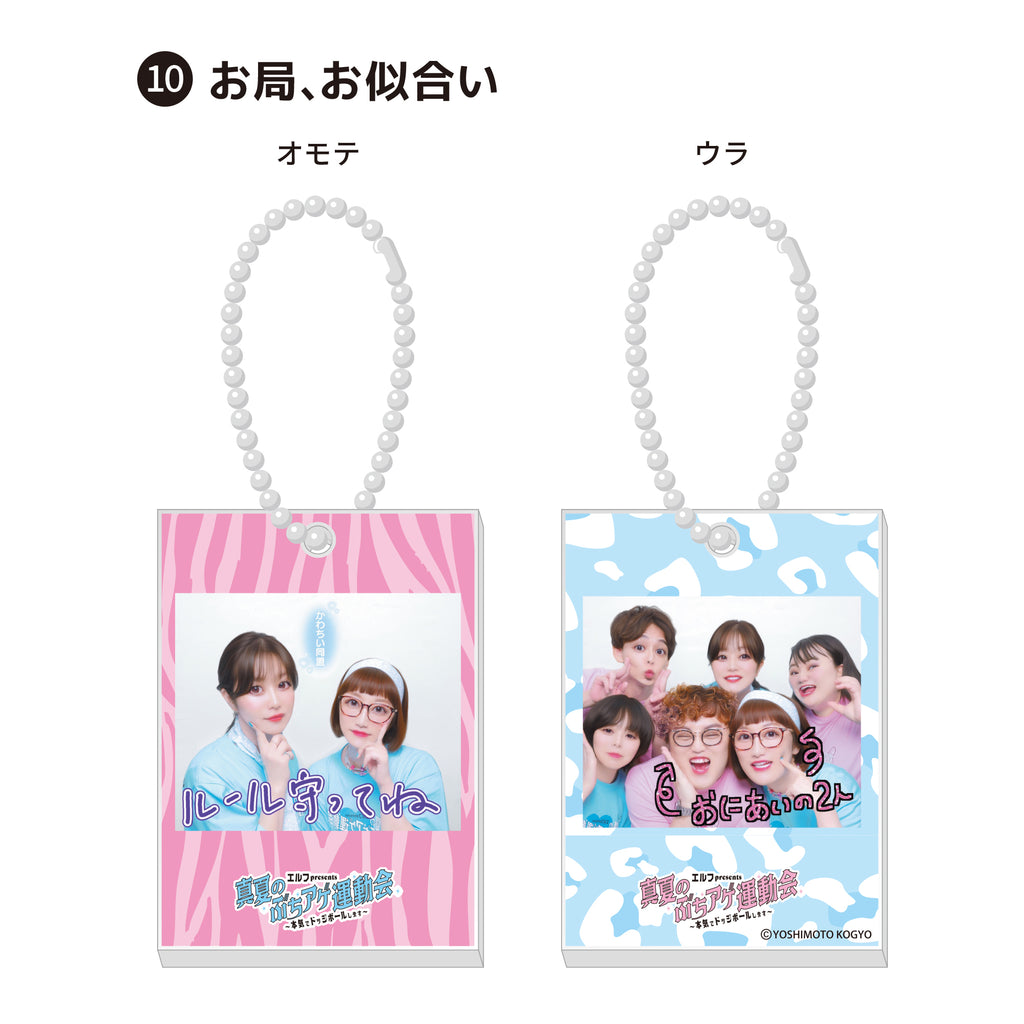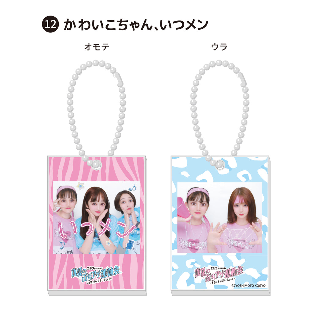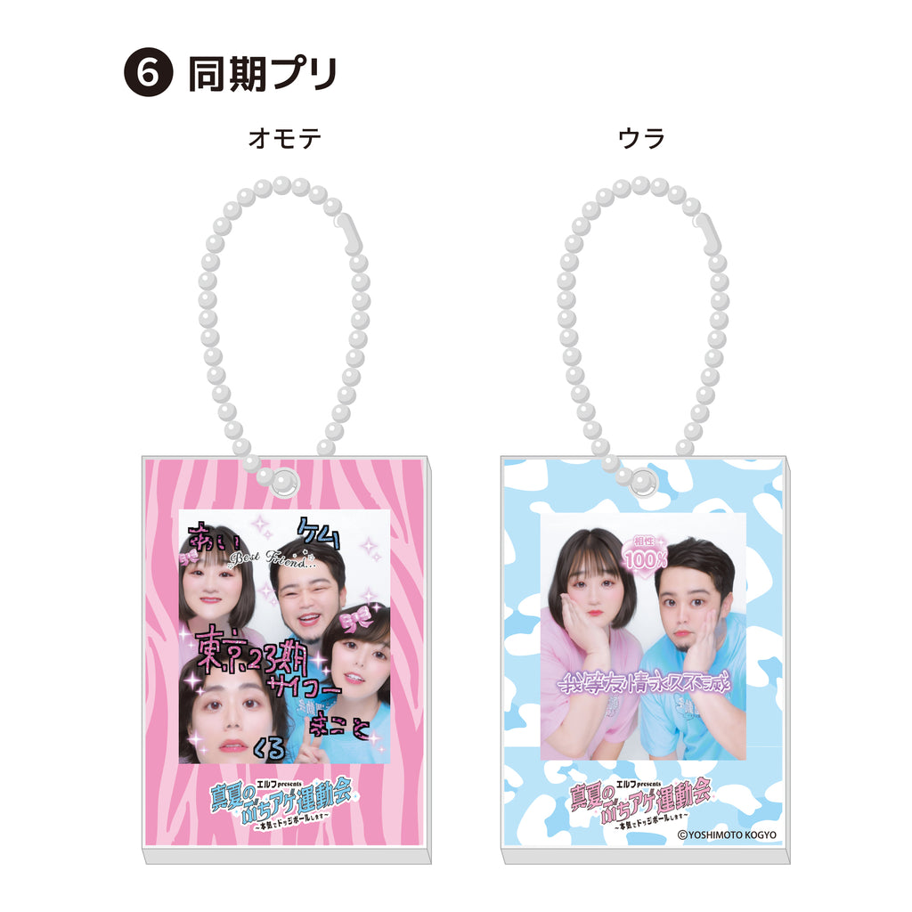 8月22日に国立代々木競技場 第二体育館にて開催した「エルフpresents 真夏のぶちアゲ運動会 ~本気でドッジボールします~」の会場楽屋に設置していたプリクラで撮影した写真で製作したアクリルキーホルダーを受注販売させていただきます。