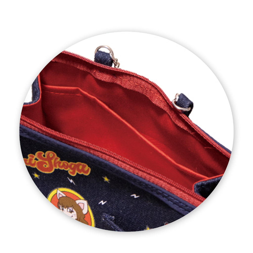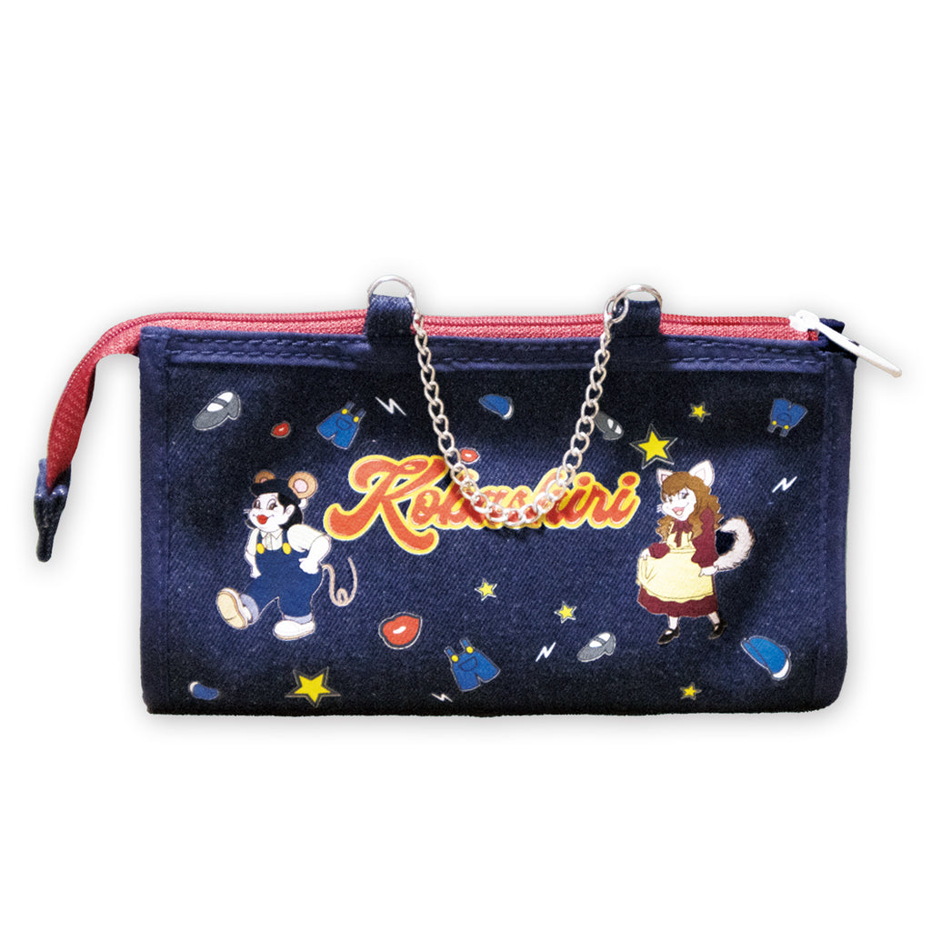 持ち運びに便利なチャーム付き! カラフルでポップなイラストを使用したデニムポーチになります。