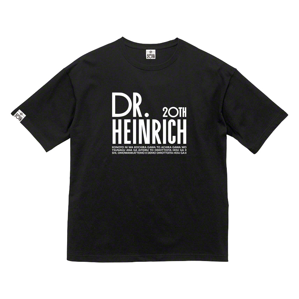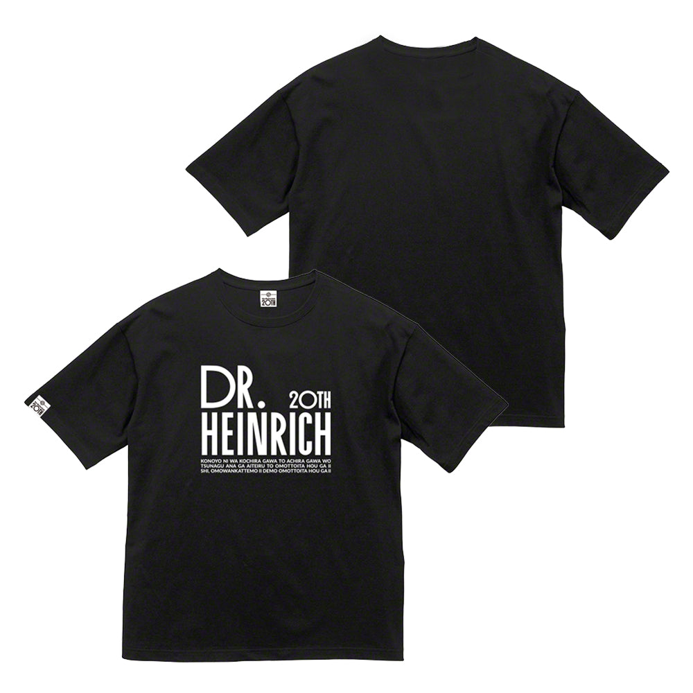 デビューから20年、Dr.ハインリッヒTシャツの定説を覆す大革命! Dr.ハインリッヒ単独ライブ「作品集vol.2」フライヤーより文字のみTシャツ販売誕生! さらに袖には20周年オリジナルロゴ付き! XS~XLの5サイズ、2色展開でどんな服にも合わせやすいからどちらの色も何枚か買っといた方がいい。 電車で立ってるときに前に座ってる人が読み出したら読ませといた方がいいし読まさんかってもいい。