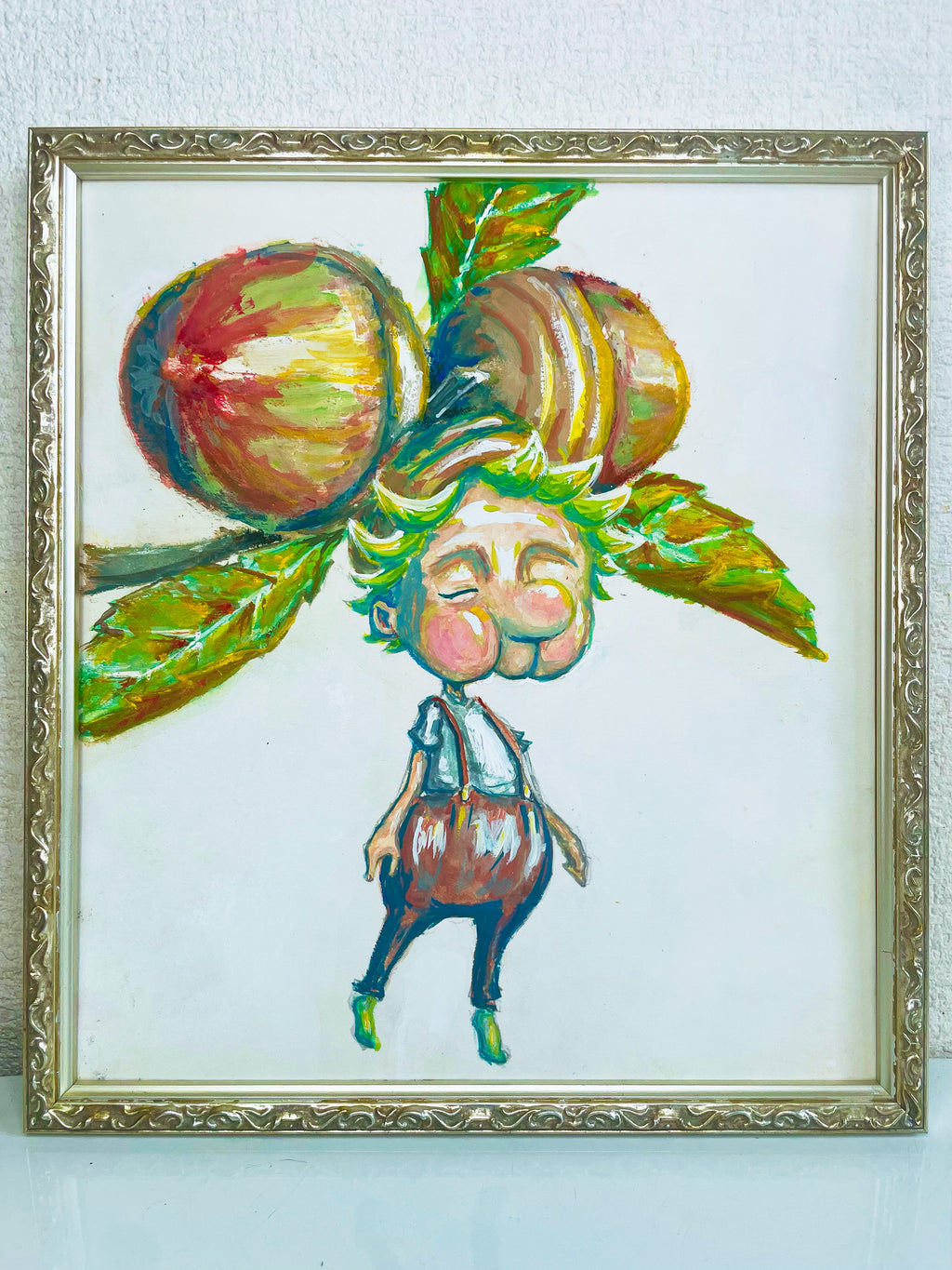 肌寒くなるころに現れる、どんぐりの妖精を描きました。彼は何を思っているの?