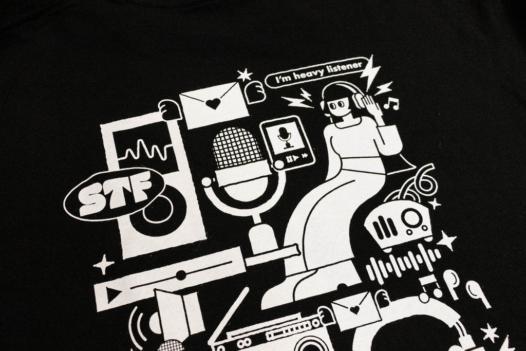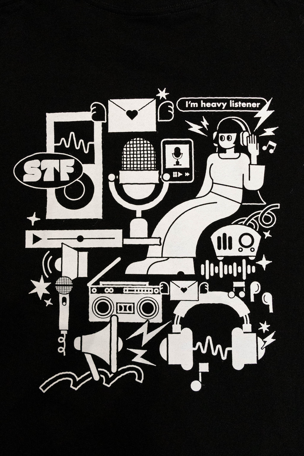 stand.fm Thanks Fes 2025のオフィシャルロンTです。フロントには左胸に「アイムヘビーリスナー」のロゴ入り。ロゴサイズ縦65mm×横80mm以内