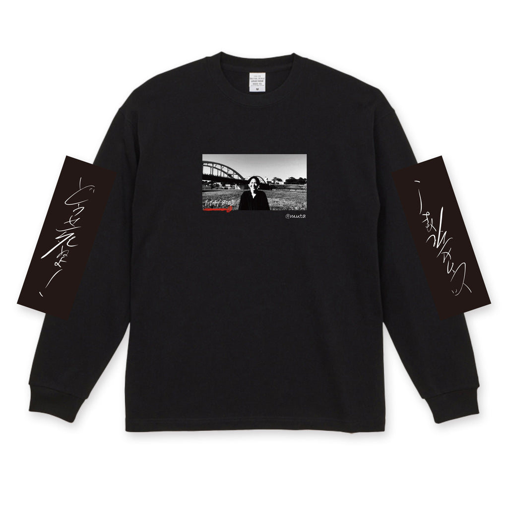 フロントに写真、バックに英字、両袖に直筆メッセージがプリントされたロングスリーブTシャツになります。