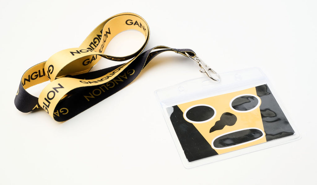 株式会社ガングリオンの社員が社内で使っていそうな社員証入れとネックストラップ。 普段のビジネスシーンでも使える実用アイテムです。